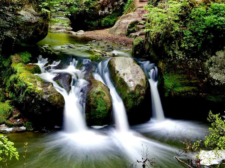 Wilde natur und imposante felsenlandschaften. Doch wir wollten uns auf den fotogenen schießentümpel, so heißt der wasserfall, konzentrieren. Das wasser schießt in drei strömen über. Der schiessentümpel ist ein kleiner wasserfall mit drei strömen über eine felskante in ein darunter liegendes felsbassin schießt. Die extratour d verbindet die region müllerthal mit dem grünewald nahe der hauptstadt.