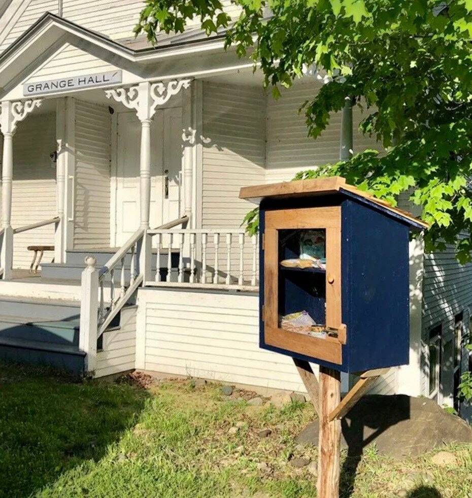 Phillip bosen of the burlington sunrise rotary and mary eddy stewart of the united church of hinesburg, vt, talk about the little free pantry in hinesburg, v.
